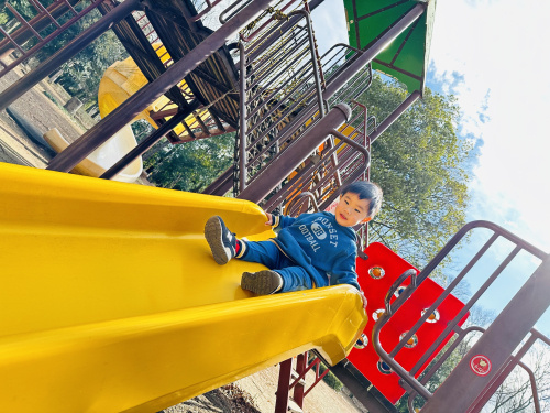 すべり台を滑るわが子(・∀・)