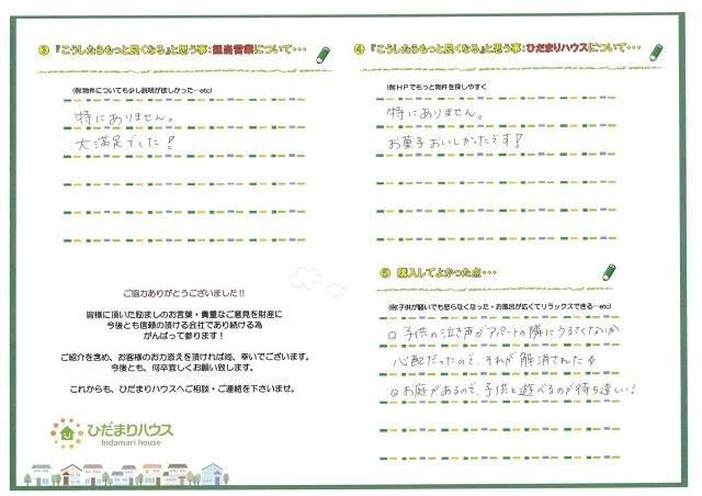 満足のいくご自宅の購入のサポートができ、大変嬉しく思います。