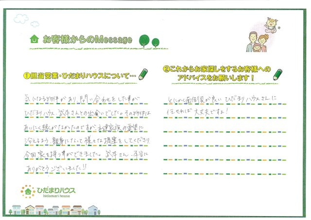 - これからお家探しするお客様へのアドバイスをお願いいたします!