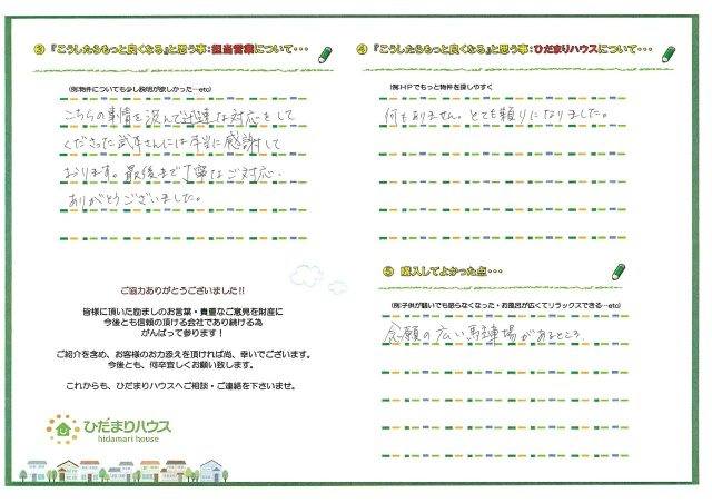 - 土地勘もない場所での家さがしで、道路事情や利便性を含め提案してくれて、
